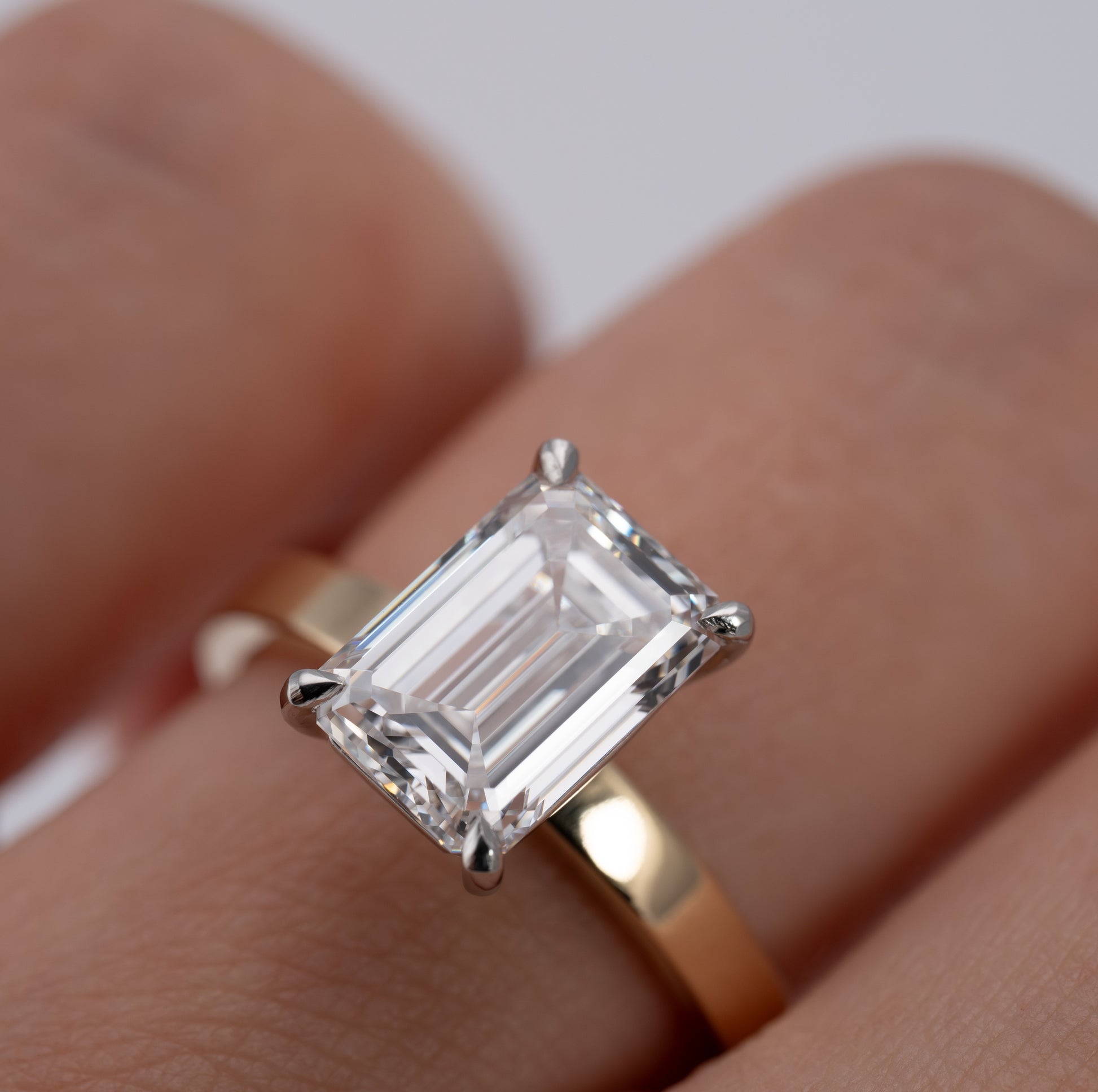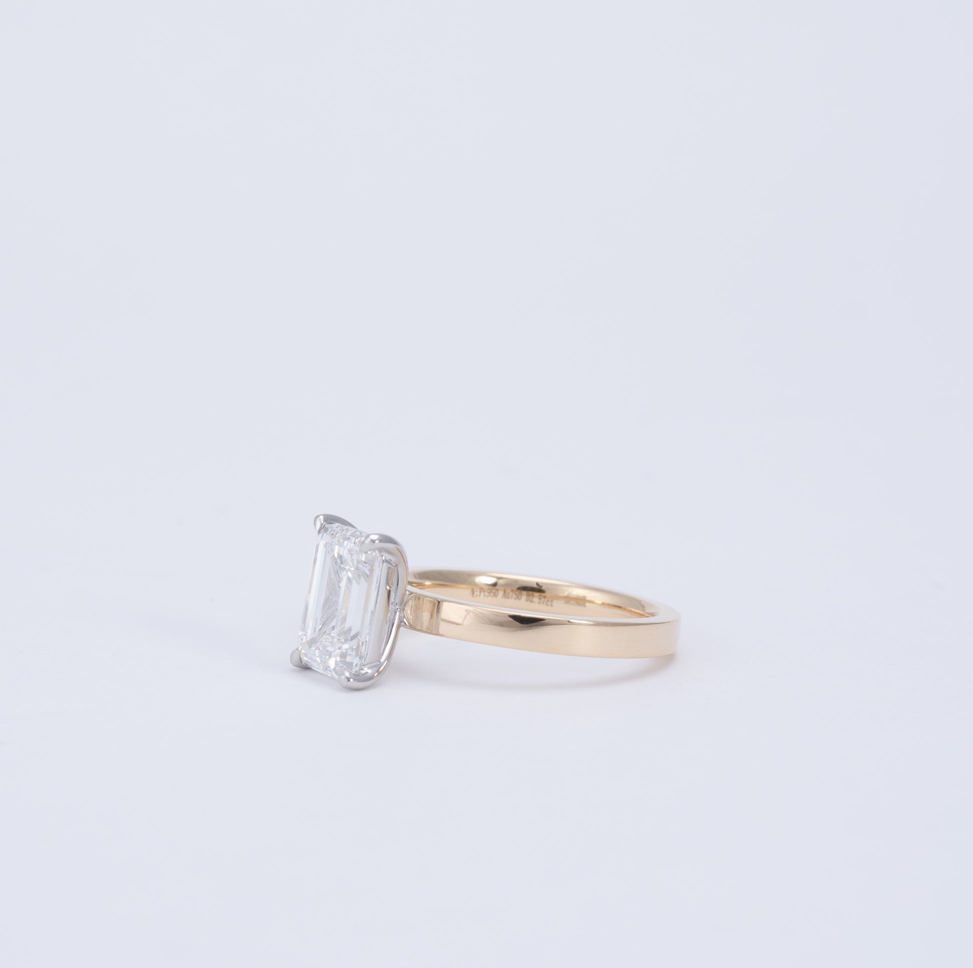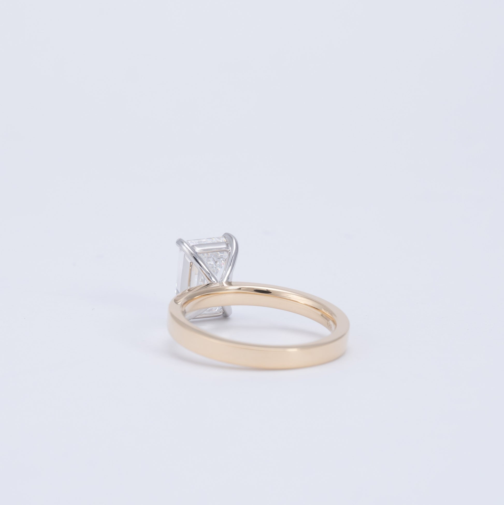 Dusk - Emerald is our minimalist solitaire engagement ring with a clean, flat-edge band. The 4-prong basket setting offers timeless elegance, while the crisp band profile adds a subtle, modern touch. Designed to pair perfectly with any wedding band.