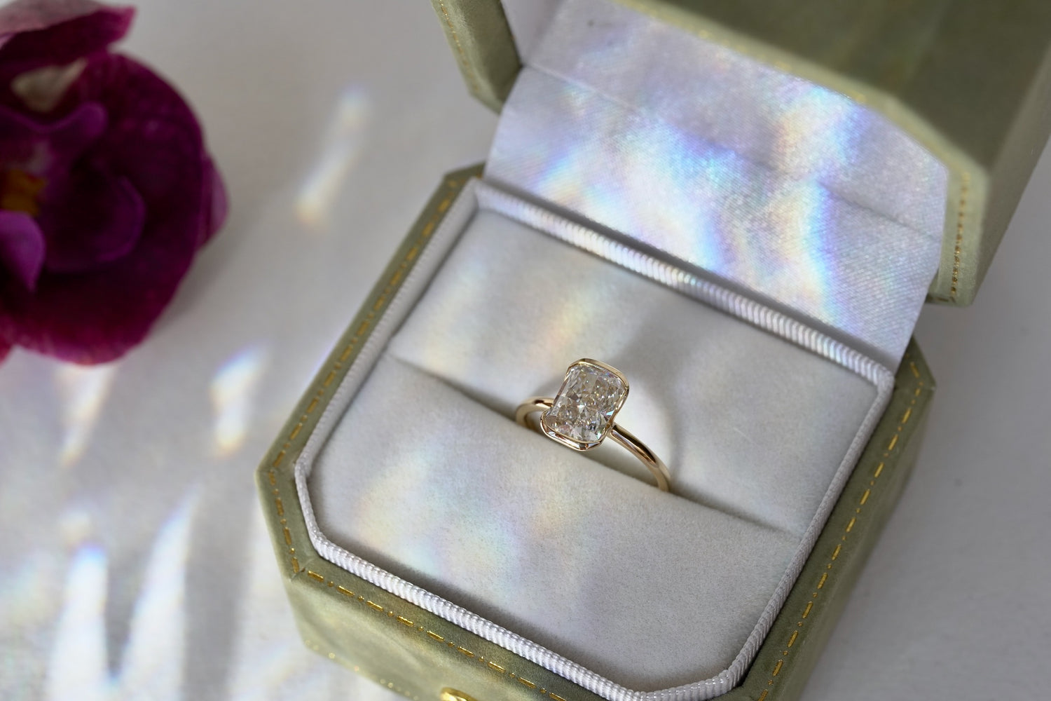 We like to think of our settings as a suit/dress tailor made for your centre stone. Each and every one of our settings are bespoke made for the exact dimensions of your selected stone, ensuring proportions are perfectly balanced and your stone is as secure as possible.